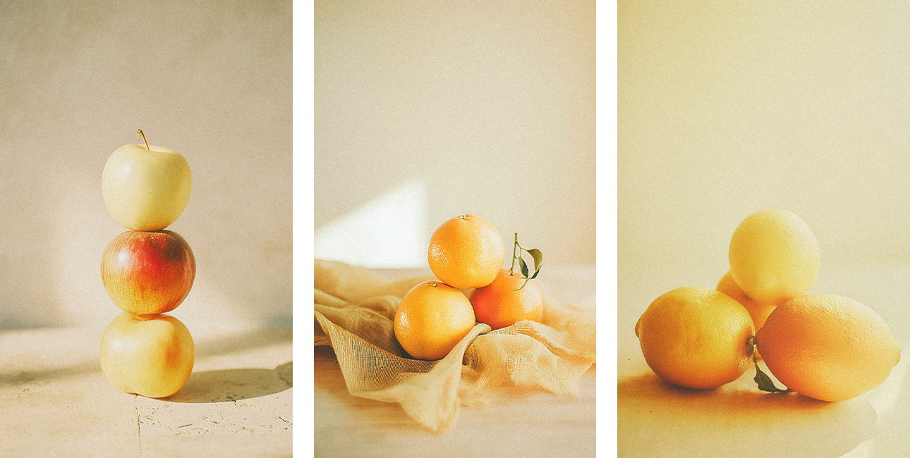Salida _ Manzana, mandarina, limón, melocotón y hojas de abedul